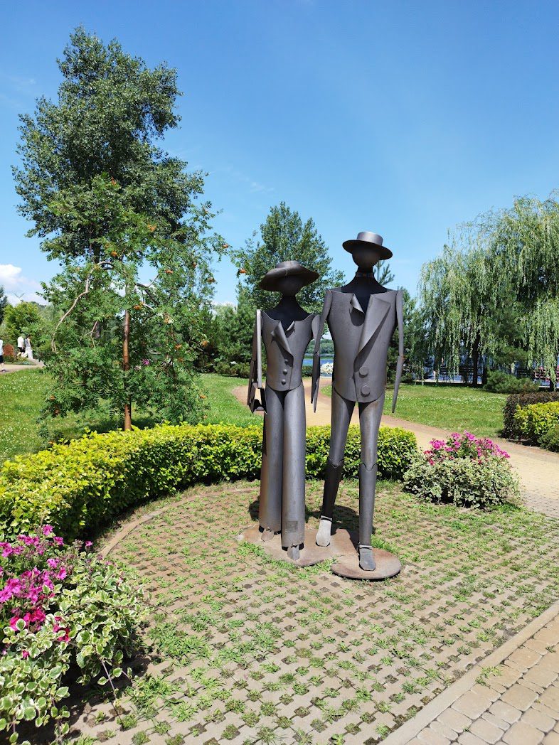 Хотя парк “Наталка” позиционируется как природная зона отдыха (даже само название происходит от природного урочища, издавна размещавшегося на этой территории), после реконструкции 2017-го года он обогатился произведениями современного искусства. Кроме настенной живописи, парк украшают урбанистические скульптуры, как, например, эта милая пара в шляпках.