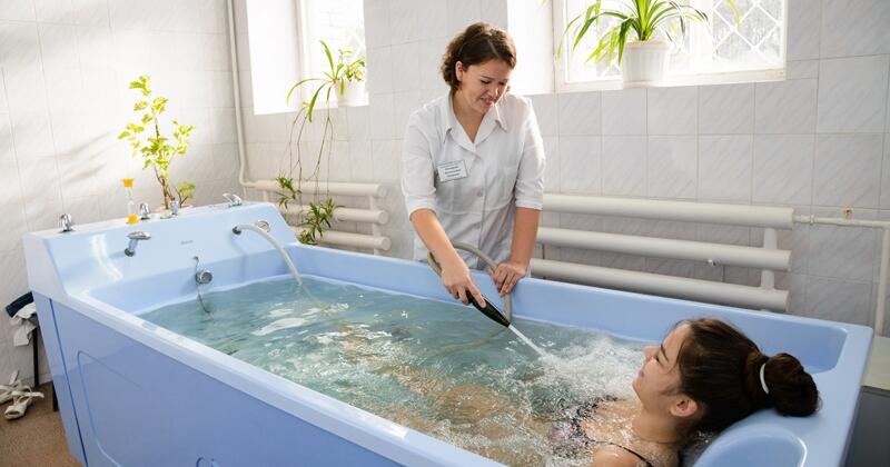 - Бальнеотерапия – лечебные ванны, душевые процедуры, плавание, ингаляции, лечение грязями и минеральной водой, электролечение и лазерная терапия;