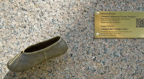 Она принадлежит величайшему киевскому танцору XX века. В 18 лет Сергей Лифарь уехал покорять Париж. Он выступал во многих спектаклях на сцене театров. Затем стал солистом балетной труппы «Гранд-Опера», а спустя несколько лет получил высшую награду в балетном искусстве — «Золотую балетную туфельку». После смерти танцора она была передана в Национальный музей истории Украины. Ее миниатюрную копию можно увидеть на улице Пушкинской, 5-7/29