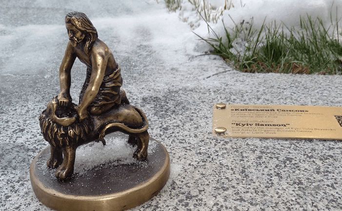 Один из старейших фонтанов украинской столицы является украшением Контрактовой площади. Он был назван в честь библейского персонажа, прославившимся своими подвигами в борьбе с филистимлянами. Мини-скульптура Самсона расположена на улице Ярославской, 58 в Киеве.
