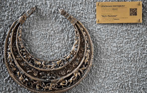 Это одна из наиболее давних и редких археологических находок, которая хранится в киевском музее исторических драгоценностей Украины. Её нашли в 1971 году в кургане Толстая Могила во время раскопок скифских захоронений. На пекторали есть много миниатюрных фигурок, которые изображают образ жизни древних скифов. В ЮНЕСКО ее признали шедевром мирового искусства. Мини-скульптура пекторали находится по адресу: Крещатик, 15/4