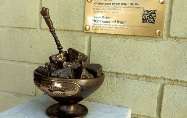 До начала Октябрьской революции на Крещатике работала кондитерская Семена Балабухи, которая стала популярной благодаря этому десерту. Как раз там был создан рецепт первого в Киеве сухого варенья. Оно нравилось горожанам и туристам, и вскоре стало визитной карточкой города в XVIII- XIX веках. Его фигурка находится по адресу: Андреевский спуск, 2-д