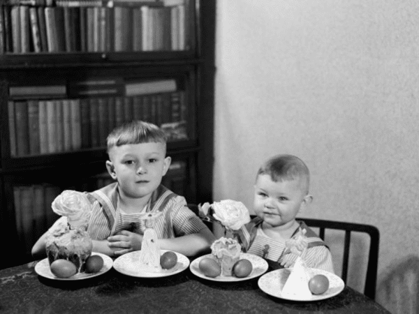 Но на этом трудные времена не закончились. В послевоенный период в Киеве начался голодомор, поэтому яйца не продавались. Некоторые люди выращивали кур и с трудом находили для них корм, чтобы в семье были яйца на Пасху. В годы массового голода часто случались кражи продуктов, которые приносили люди в церкви для освящения. Чтобы попасть на церковную службу, они приходили еще днем и ждали по несколько часов пока начнется богослужение.
