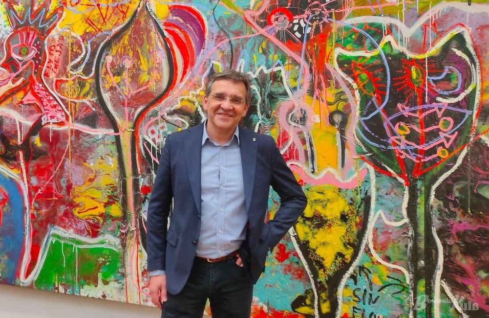 Тож можна сказати, що Макс Вітик – українсько-американський художник і геолог, який зараз живе і працює в Києві. Він найбільш відомий своїми авангардними абстрактними серіями на тему геології, а також фігуративним мистецтвом, натхненним глобальними революційними подіями, щоб передати боротьбу за свободу. За освітою геолог, він постійно експериментує з різноманітними матеріалами: камінням, піском, промисловими матеріалами, різними фарбами і пігментами та іншими змішаними техніками. Його полотна часто багатошарові, сильно текстуровані і нагадують поверхні магматичних порід, вкриті ієрогліфами.