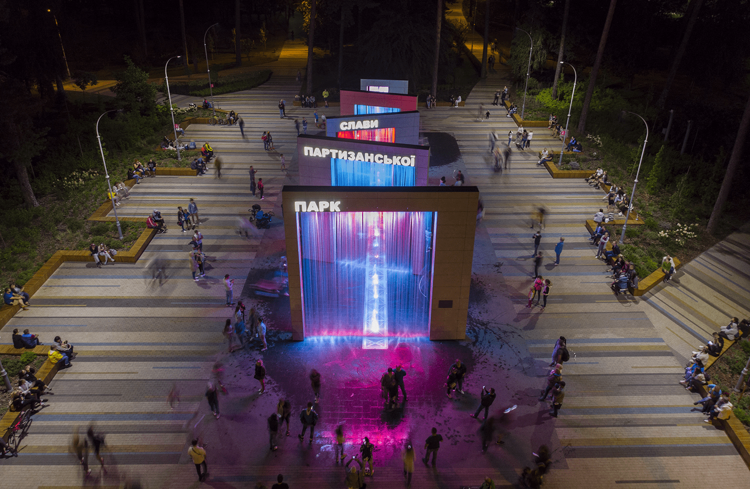 Місце прекрасне для прогулянок з друзями, коханими та дітьми, адже локацій у ньому вистачає. Біля арок-фонтанів ви можете зробити стильні фото для постів в соц.мережах, прогулятись біля Червонохутірських озер та відвідати мотузковий парк.