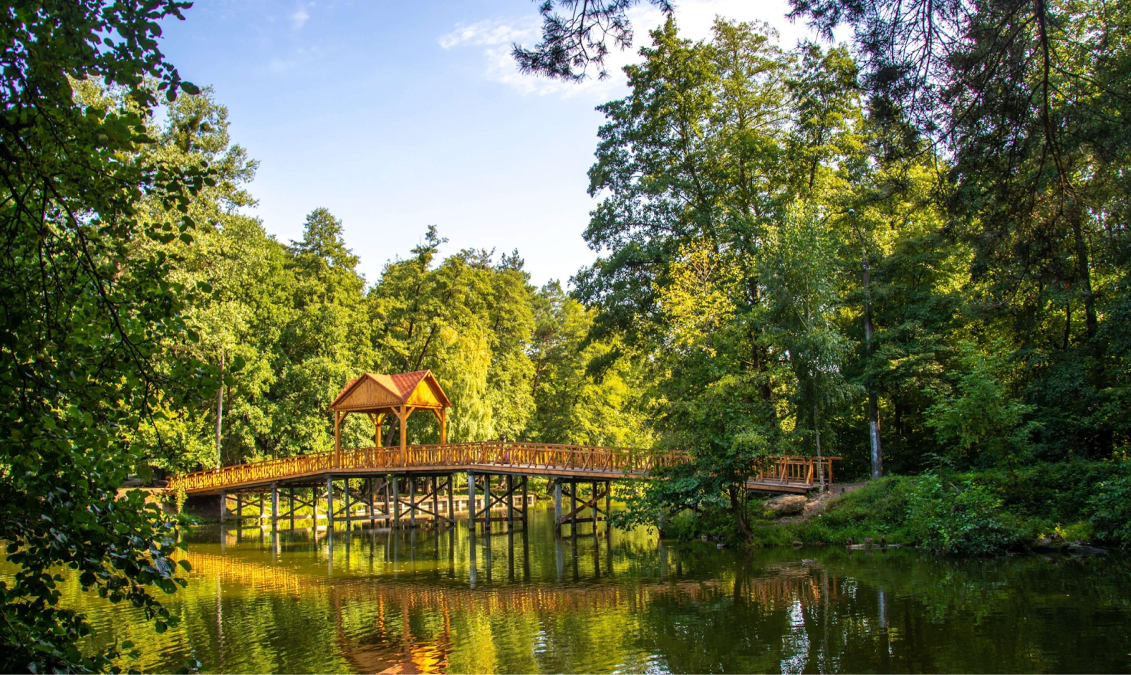 Ще не діставшись до парку на 5-й лінії, ви зможете насолодитись романтикою київського тунелю “Кохання”. Парк складає враження, наче ви виїхали з Києва, адже там надзвичайно спокійна та розмірена атмосфера. В центрі є невеличка кавʼярня, хвойний ліс, вихід до озера Горащиха та романтичний місток для ваших фото.