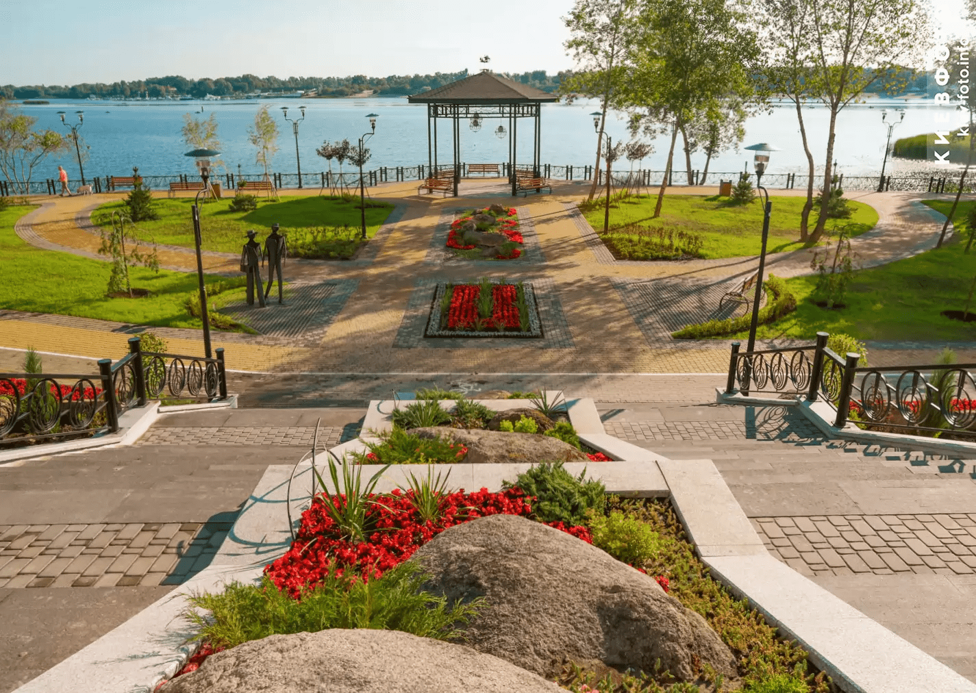 Свій маршрут від оглядового майданчика на Дніпро ви можете продовжити та пройти до Маріїнського палацу через Маріїнський парк, арку Свободи українського народу, скляний міст та міст Закоханих. А згодом можете вийти до станції метро “Арсенальна” та зо двадцять хвилин дістатись монументу “Батьківщина-Мати”.
