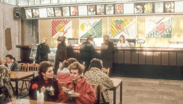 Це кафе відкрилося 1950 року. Там працювали офіціанти. Вони приносили морозиво на стіл для відвідувачів. Кількість бажаючих замовити морозиво постійно зростала. Згодом біля входу до кафе «Морозиво» щодня збиралася величезна черга. Людям доводилося довго чекати, щоб зайти до цього закладу. Через це кафе почало втрачати прибуток. Але пізніше було запропоновано вигідну альтернативу — організувати самообслуговування клієнтів. З того часу вони самі шукали вільне місце за столиками і квапили тих, хто довго сидів у кафе.