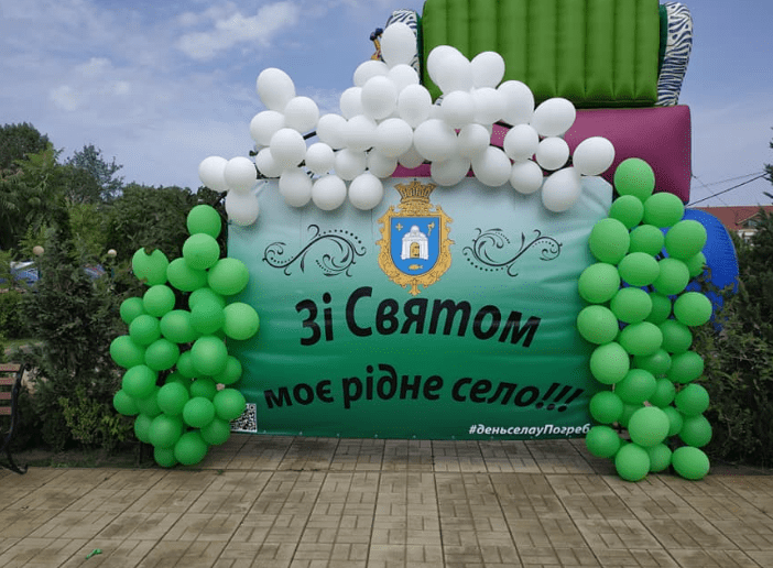 Найближче до Києва знаходиться село Погреби. На його гербі зображено чотири елементи, кожен з яких має відгуки в історії населеного пункту. По центру розміщено погреб. Адже за найбільш офіційною версією назва села походить від погребів, які київські монахи мали у цих краях. Про церковну приналежність села також свідчить золотий хрест, який розміщено у лівому верхньому кутку. Разом з тим у правому верхньому кутку розташували сокиру. Вона говорить про другу версію походження назви села. За переказами та згідно з деякими літописними згадками на території села знаходилося укріплення дружинників київського князя. Свого часу ним керував тисячний Ратибор, печатку якого було знайдено у середині 20 століття. Це укріплення відігравало роль як прикордонного пункту на шляху з Чернігова до Києва, так і мало темницю для тимчасового ув’язнення. Споруда була збудована з порубів – рубаних колод. За аналогією як козаки збудували Січ з січених колод. Ймовірно, що з часом слово “поруб” трансформувалося у назву села Погреби.