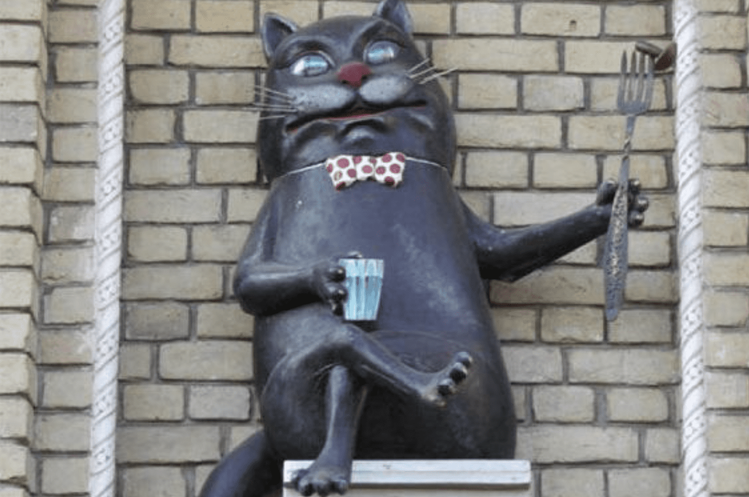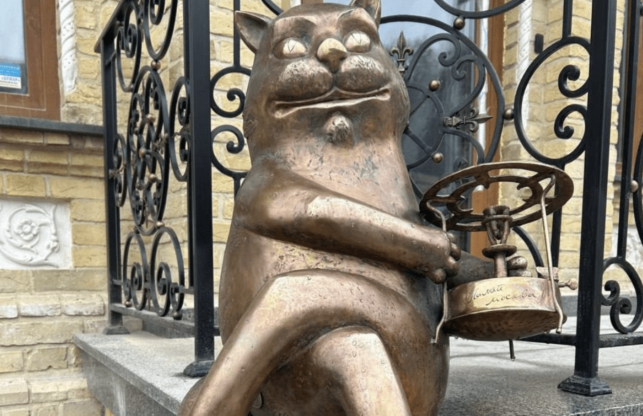 На вулиці Андріївській узвіз, 13, на будівлі музею Булгакова, була скульптура кота Бегемота з роману “Майстер і Маргарита”. В одній лапі кіт тримав склянку с горілкою, а в іншій виделку з маринованим грибом, та з невідомих обставин скульптура просто зникла.