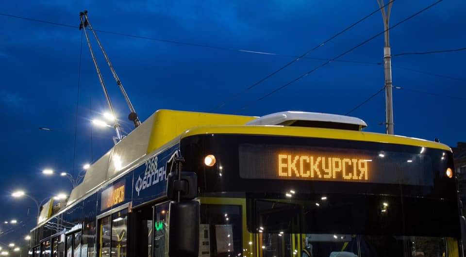 Поїздка відбулась ввечері. Замість звичного напису номеру тролейбусу яскраво світилась вивіска “Екскурсія”. Звичні зупинки так і не були озвучені, натомість Олександр Шафаран розповідав цікаві факти і містичні історії надзвичайно загадкового міста . Нічна столиця сіяла як ніколи.